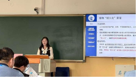 2021级本科生袁博同学分享了与张樹沁副教授合作的研究,题为《“以情相宠”——“它”经济对宠物拟人属性及人宠亲密关系的建构》,从宠物消费者和服务者的视角出发,探讨宠物经济活动对于宠物拟人化身份的转变和人宠亲密关系的影响。研究发现,以“丁宠”父母为代表的宠物主会通过拟人化消费来重塑宠物家庭地位并赋予宠物拟人属性,宠物服务者则会搭建拟人服务场景并进行“情感标记”,即通过服务细节进一步证实、凸显宠物拟人身份并维系人宠亲密关系。
